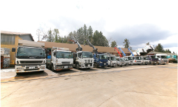 当社車両による産業廃棄物の収集、100HPプレス機での圧縮による中間処理